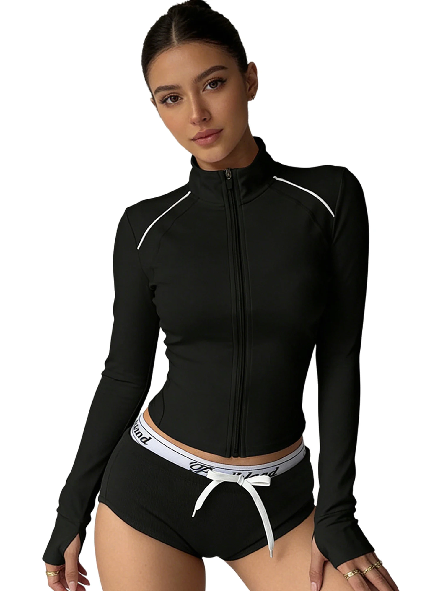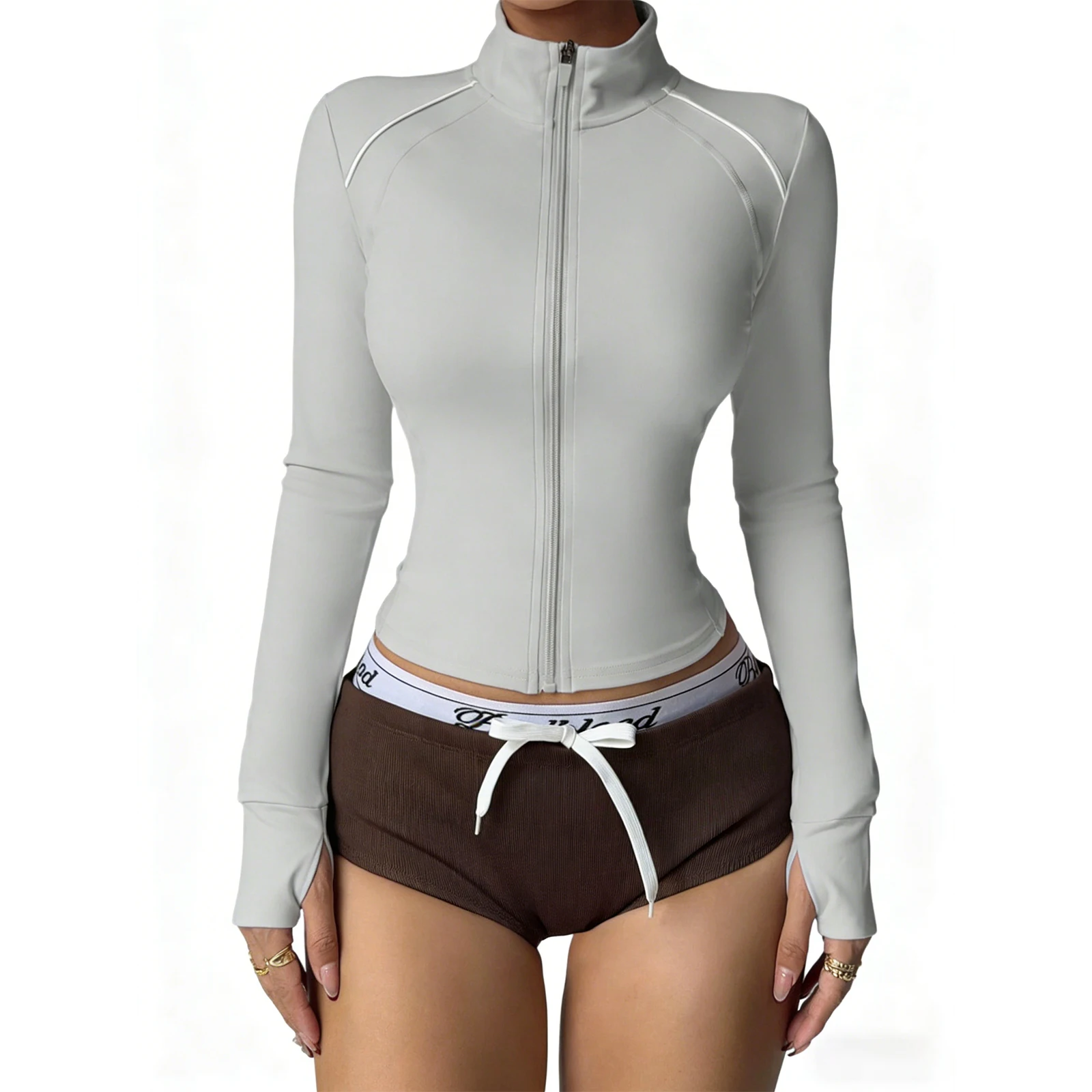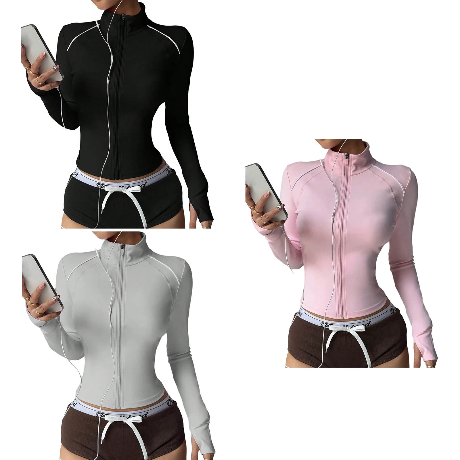 Womens Yoga Workout Jacket Long Sleeves Lightweight Full Zip Up Athletic Slim Fit Tops with Thumb Hole Gym Running Outerwear